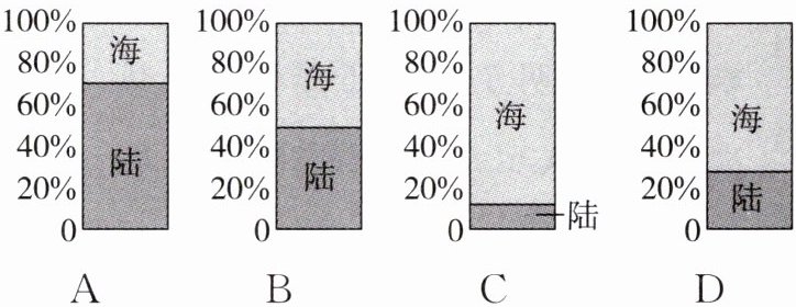 1. 地理活动课上,四组同学分别用泥沙代表陆地、清水代表海洋,装入透明玻璃杯中表示世界海陆面积比例,正确的是( )
