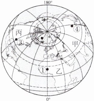 3. 根据海陆轮廓和经纬度位置可以判断大洲,据图判断甲、乙、丙三个大洲依次为( )