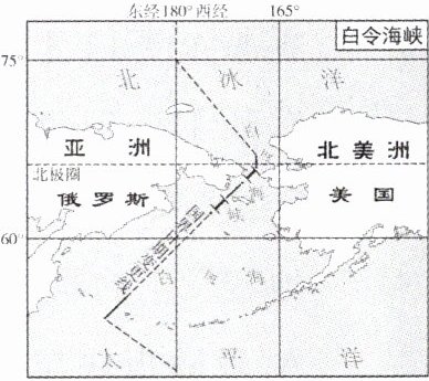 近年来,北极航道通航能力大大提升,白令海峡是北极航道的重要通道。读图,完成4~5题。