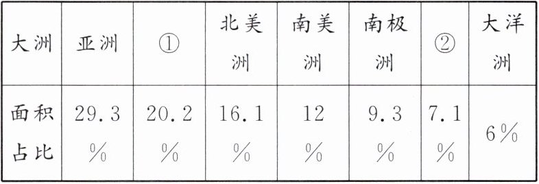 |大洲|亚洲|①|北美洲|南美洲|南极洲|②|大洋洲|