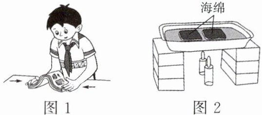 (1)实验一,用手按图1所示箭头方向挤压书本,书本发生的变化是______,该实验模拟了板块的______(张裂或碰撞挤压)运动。(2分)