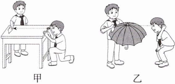 (1)纸片分别在桌面上后移和伞面上后移,观察到纸片慢慢消失的是______图。