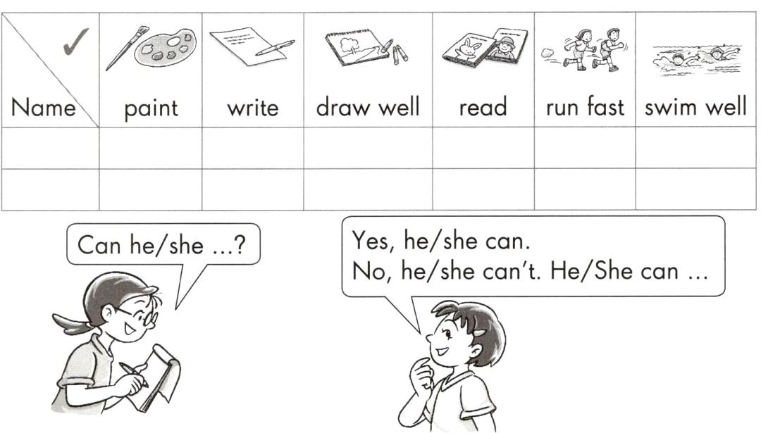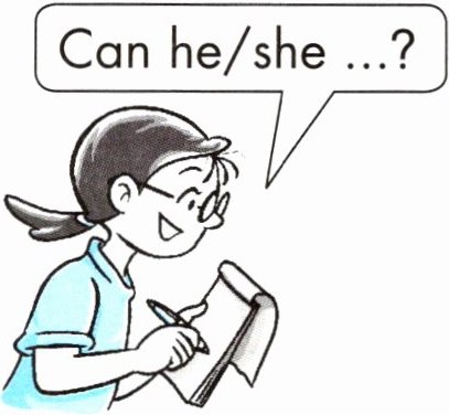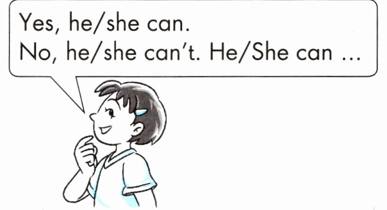 Can he/she ...? Yes, he/she can. No, he/she can't. He/She can ...