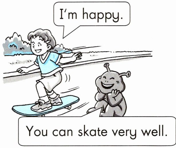 Alice and Spaceboy are in the park. Alice likes her skateboard. She is ______. Spaceboy is ______ too.