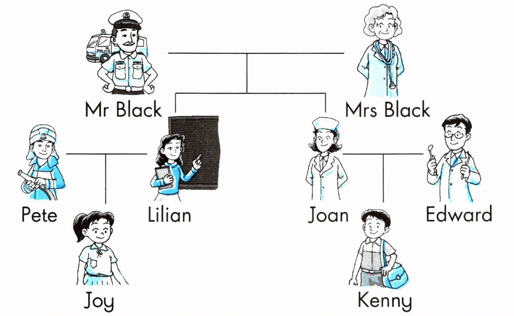 A Look and complete (根据布莱克一家的家谱完成表格)