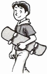 He ______ a skateboard.