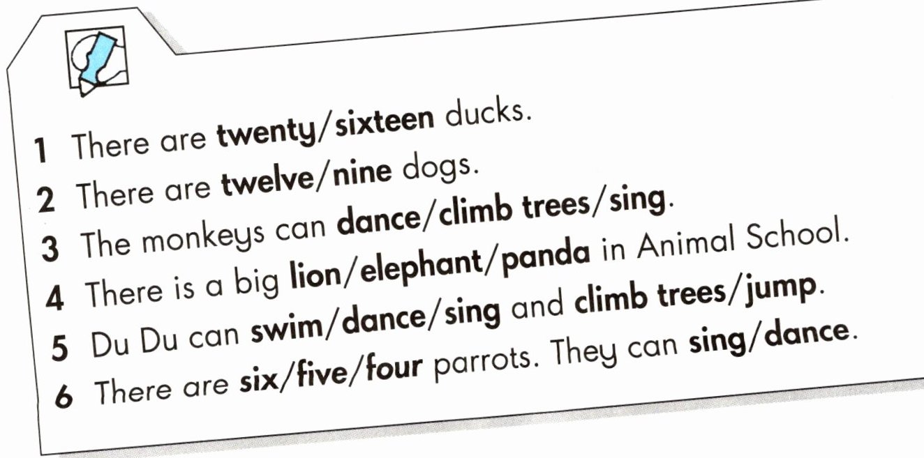 5 Du Du can swim/dance/sing and climb trees/jump.