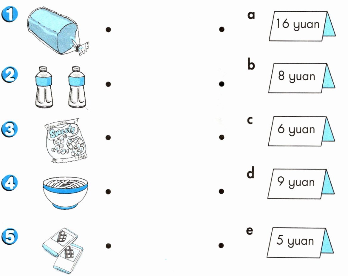 1. a bar 2. c biscuits 3. b a packet of sweets 4. c a bottle of water 5. c Is there a bowl of soup? 6. b How much are the sweets?