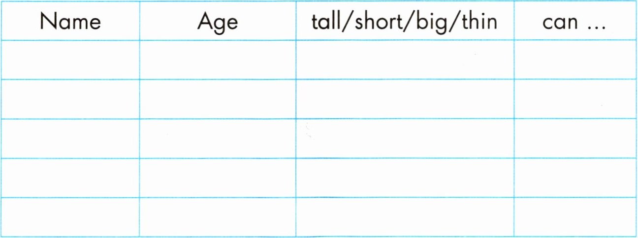 A Ask and write(向你的同学询问他/她的好朋友,然后填表格)