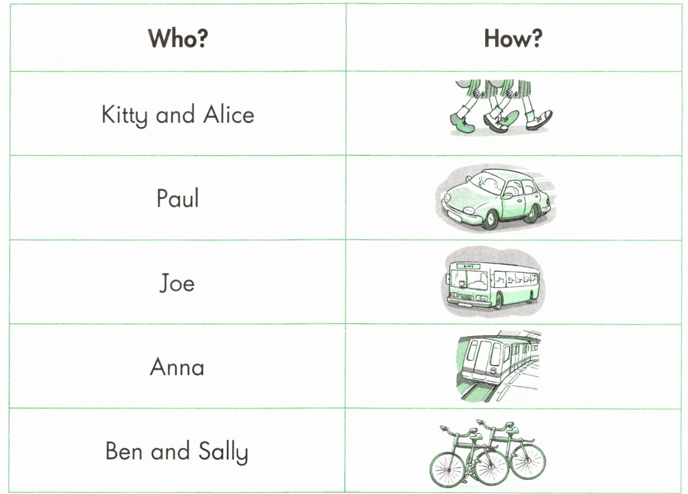 ⑤ How do Ben and Sally go to school; They go to school by bicycle