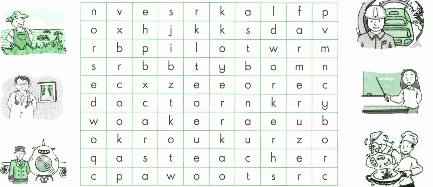 E Look and circle(看图,在字谜中圈出相应的单词)