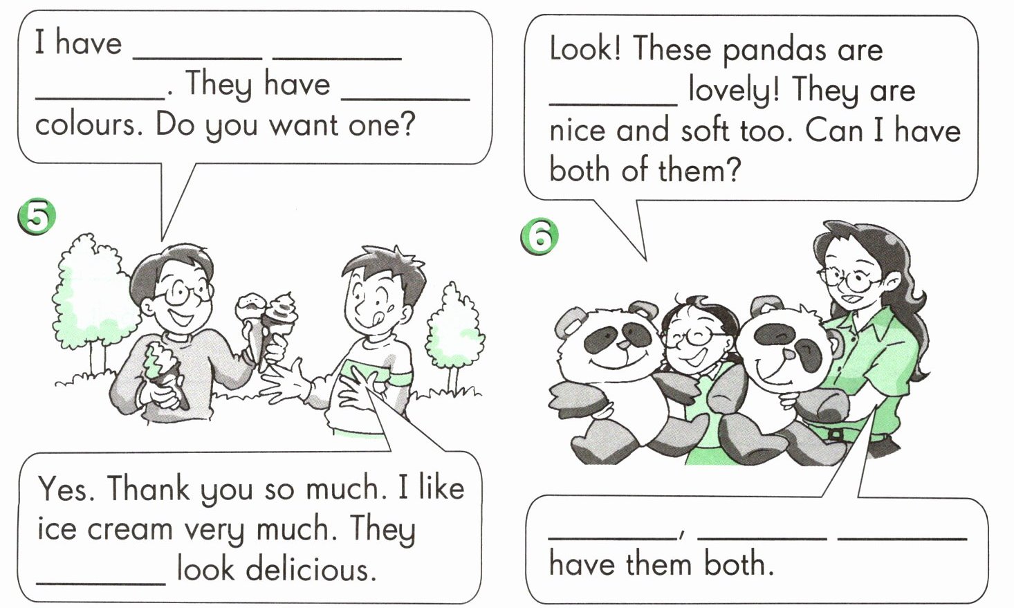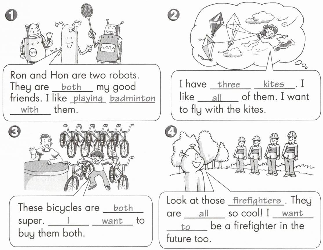 G Look, read and complete(看图读一读,填空完成句子)