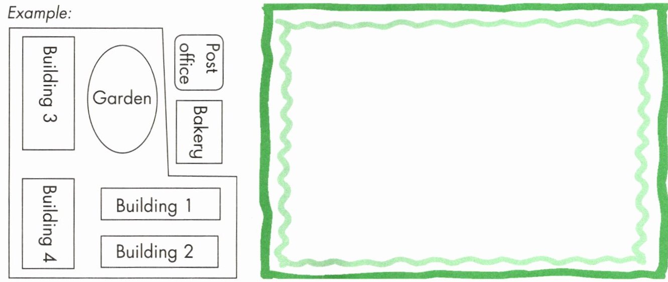 A Think, draw and write(想一想,根据示例为你居住的小区四周画一张简易地图)