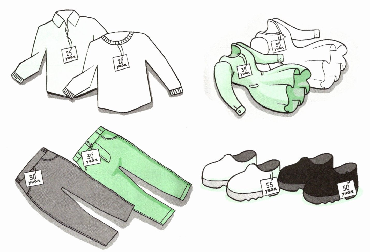 ) 3 There aren't any blue T-shirts in the clothes shop.(