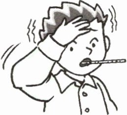 b He has a fever and feels bad.