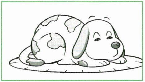 Sam the dog looks very unhappy, but Kitty does not know what is the matter with him.