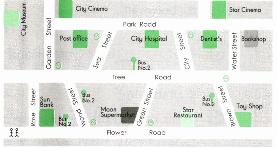 Police officer: Turn left at the Rose Street and then go straight. Turn right at the Tree Road. Then turn left at the Garden Street and go straight. Turn right at the Park Road and go straight. You can find the dentist's on your right.