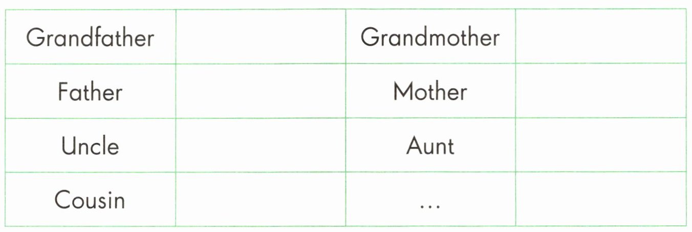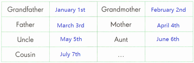 A Think and complete(想一想,填写家庭成员的生日)