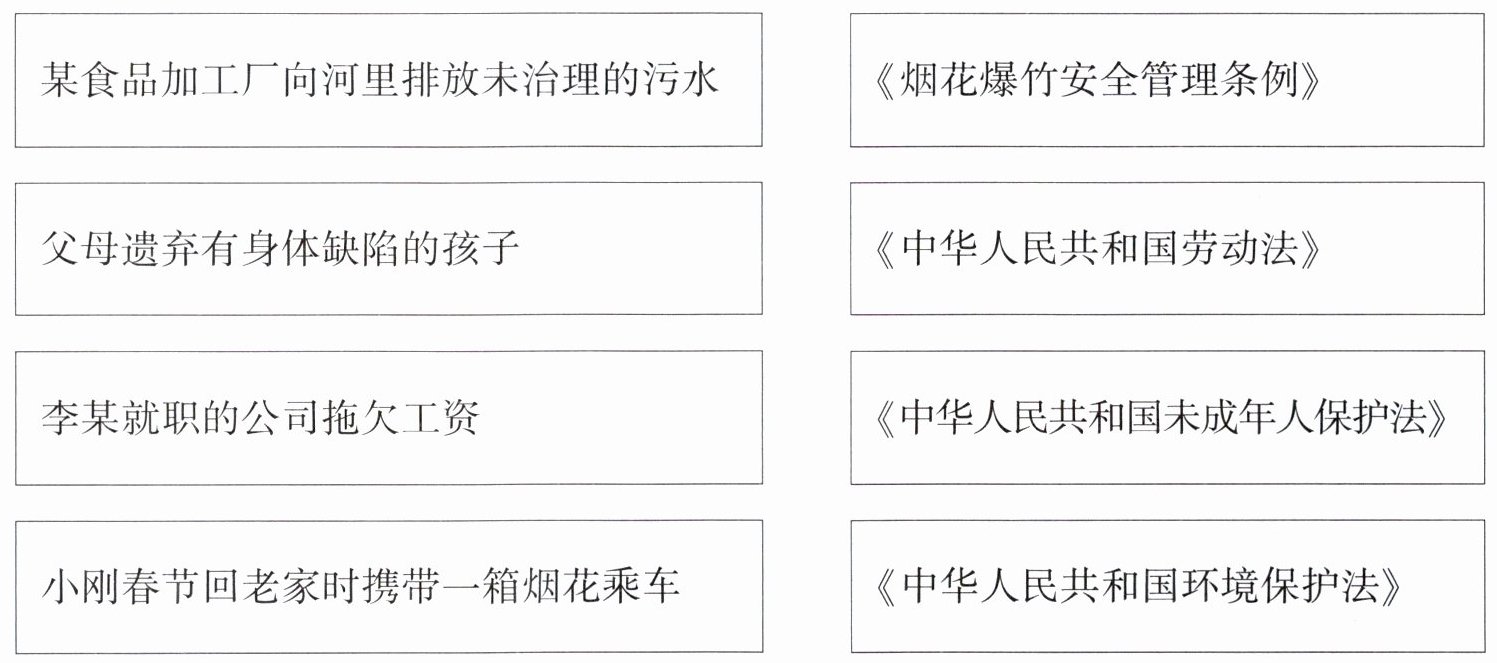 2. 用线将下列情景与对应的法律、法规连起来。