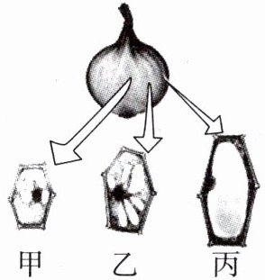 8. 分别从洋葱鳞茎的内、中、外三个部位撕取叶内表皮观察,看到的细胞结构分别如图甲、乙、丙所示。下列分析