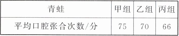①甲、乙、丙三组青蛙中,口腔张合最频繁的是