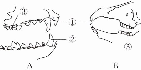 材料二 狼的牙齿分为门齿、臼齿和犬齿。犬齿特别发达,能够撕裂食物,有利于捕食各种小动物。牙齿损坏可能导致食物缺乏而影响其生活。