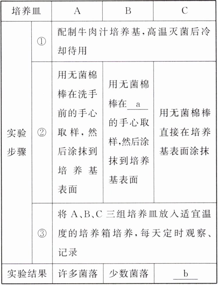 。(3)实验步骤②,用无菌棉棒对手心取样后涂抹到培养基表面,这个过程相当于