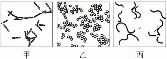 1. 如图是三种不同形态的细菌,图中甲、乙、丙依次是(