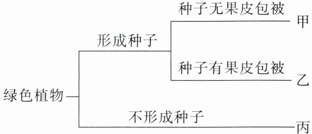 5. 如图为部分植物的分类,其中甲、丙所能代表的植物分别是(