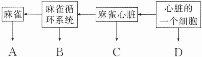 19. “麻雀虽小,五脏俱全”是对麻雀的整体性描述。下图所示的结构层次中,属于器官的是(