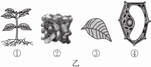 C.图乙中植物体结构层次的正确排序为④→②→③→①
