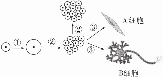 (1)生物体能由小长大,与图中的三个过程是分不开的,其中①代表的是细胞