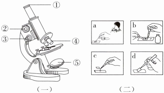 )A.图(二)中制作临时装片正确的操作顺序是c→a→d→b,步骤c中滴在载玻片中央的液体是生理盐水