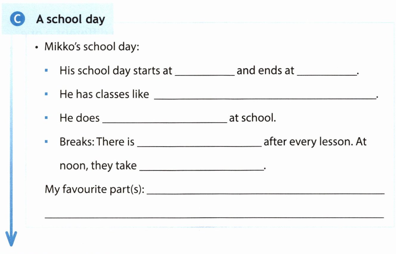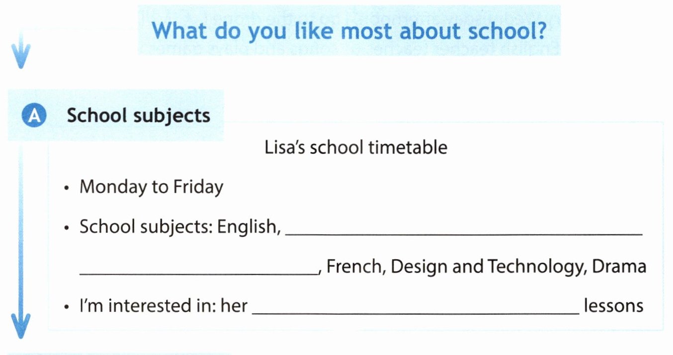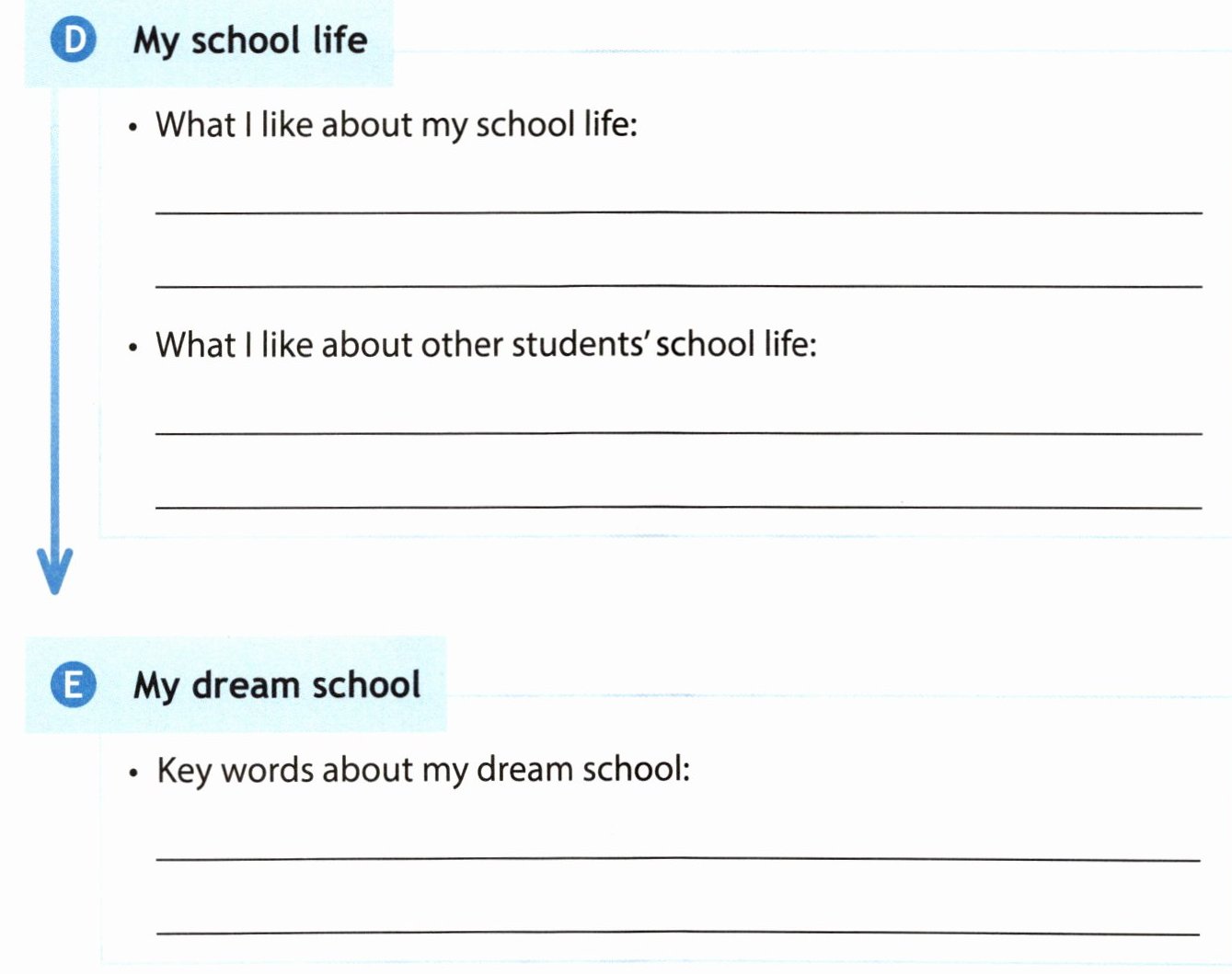 - What I like about other students' school life:interesting subjects, after-school activities, ...