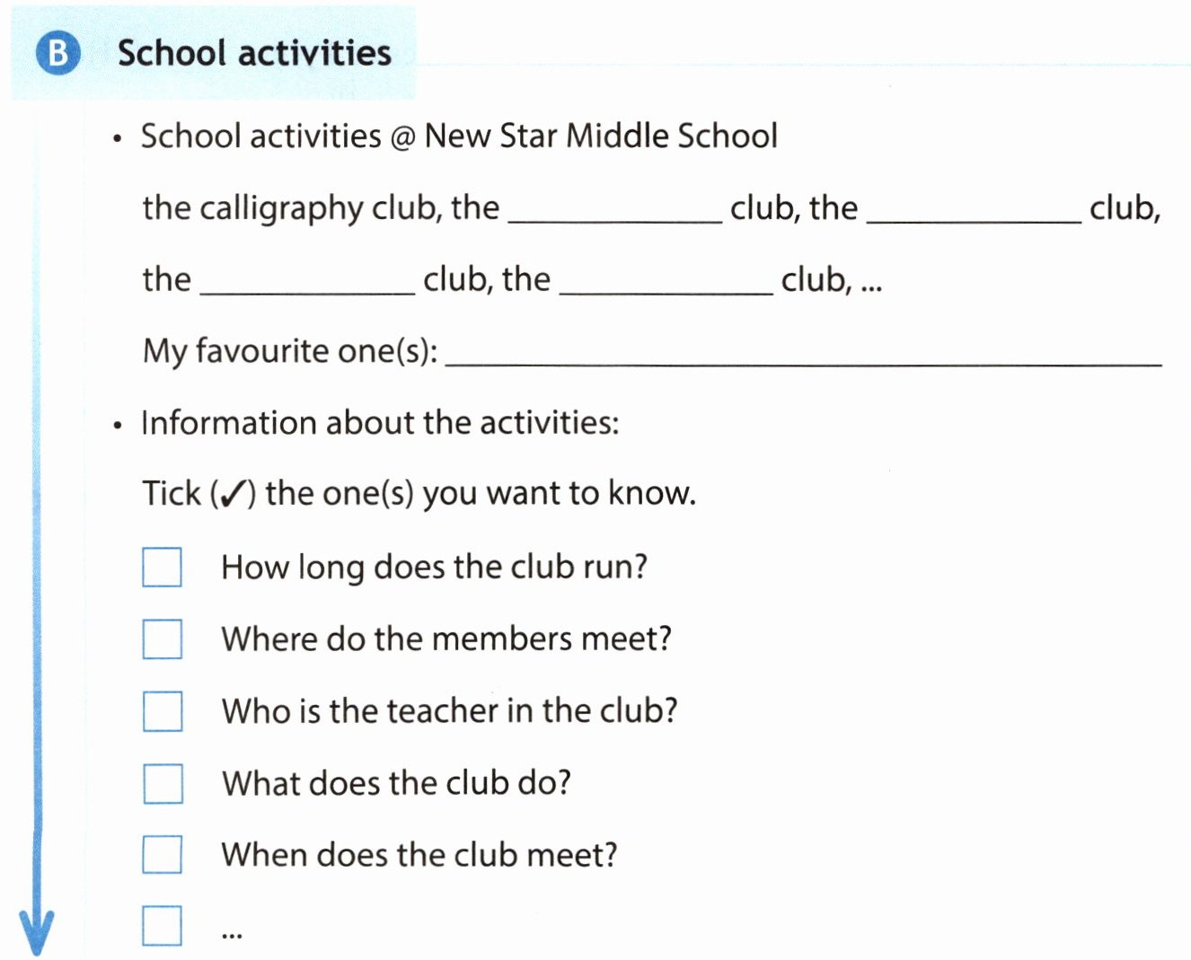 the calligraphy club, the STEM club, the football club, the cooking club, the music club, ...