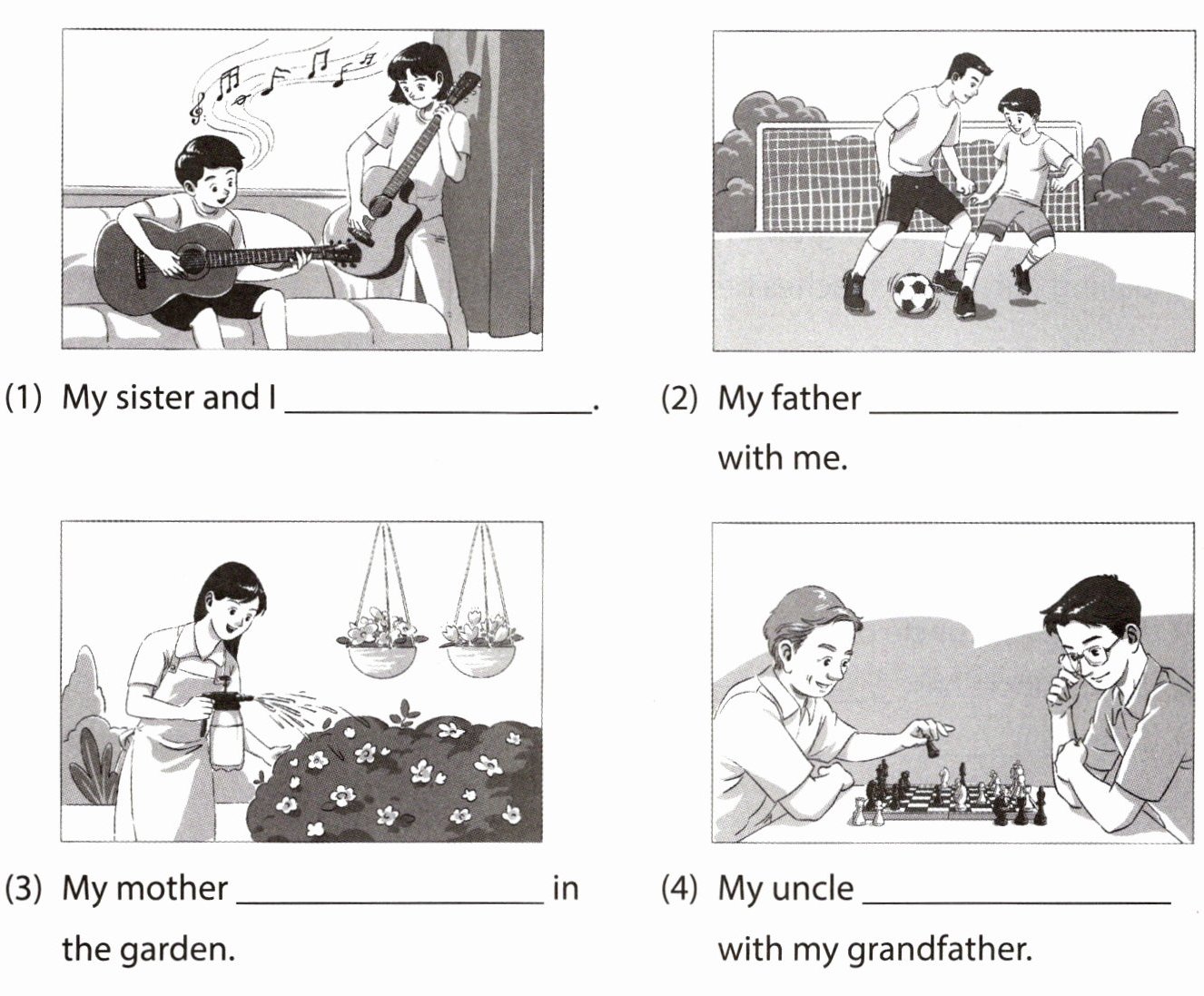 1Zhao Peng is introducing his family members to Lu Yao. Look at the pictures and complete the sentences below. 赵鹏正在向陆遥介绍他的家庭成员,看图补全下列句子。