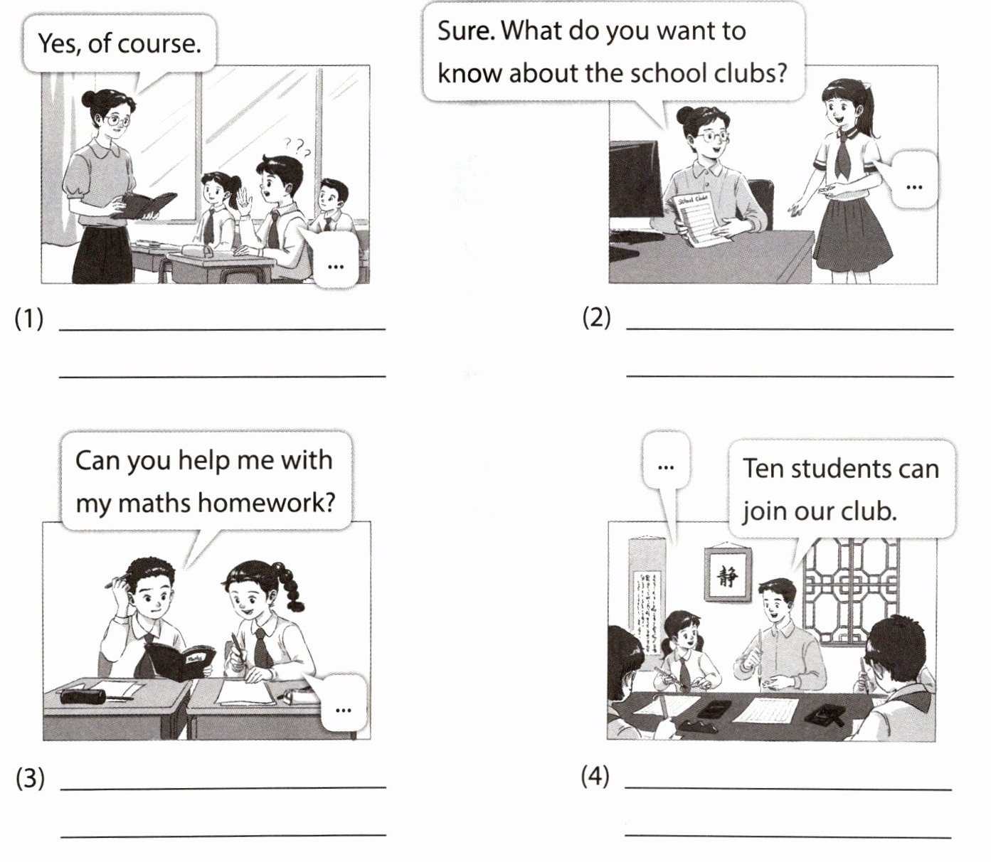 (2) Excuse me. May I ask some questions about the school clubs?