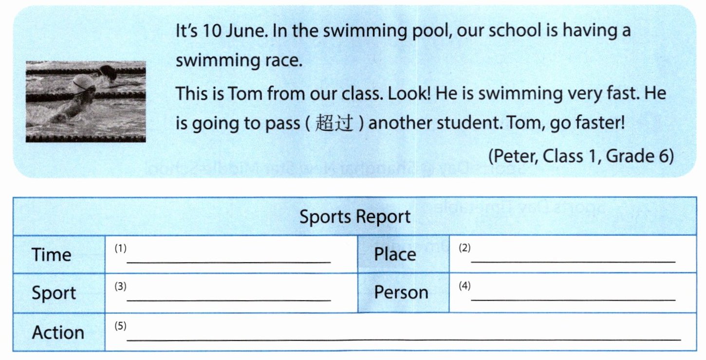 1 Read the sports report and complete the table. 阅读体育报道,补全表格。