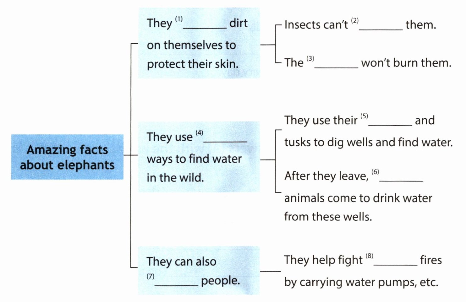 Elephants know how to protect (保护) themselves. If you visit a safari park, you may see elephants throw dirt on themselves. They do this because dirt protects their skin. Insects (昆虫) can't bite them and the sun won't burn them.