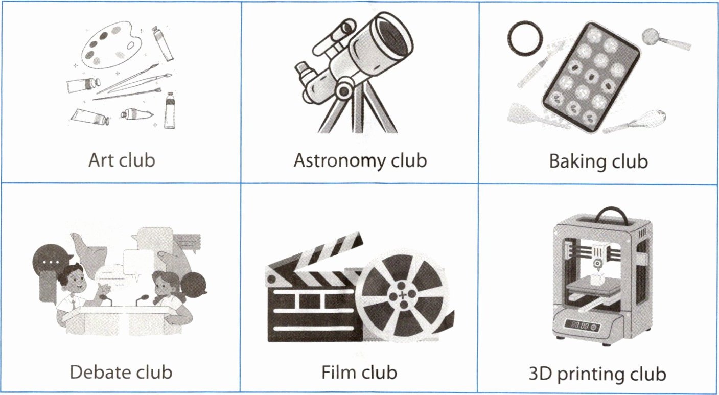 3. Which of the following school clubs would you like to join? Make your choice and explain with reasons. 你想加入下列哪个社团?作出选择并谈谈原因。