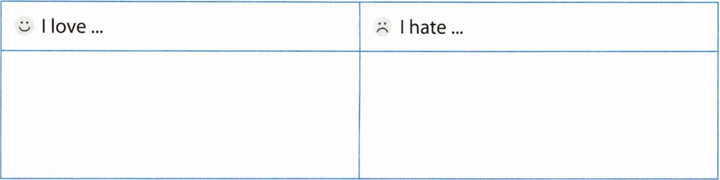 I love ...; I like ...; I enjoy ...; I am really into ...; My favourite thing is ...; I am a big fan of ...; ... makes me happy.