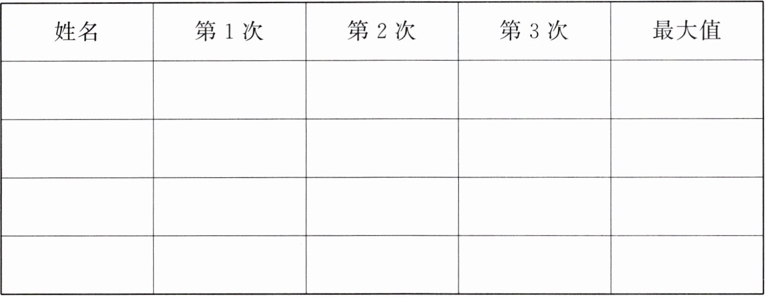 |姓名|第 1 次|第 2 次|第 3 次|最大值|