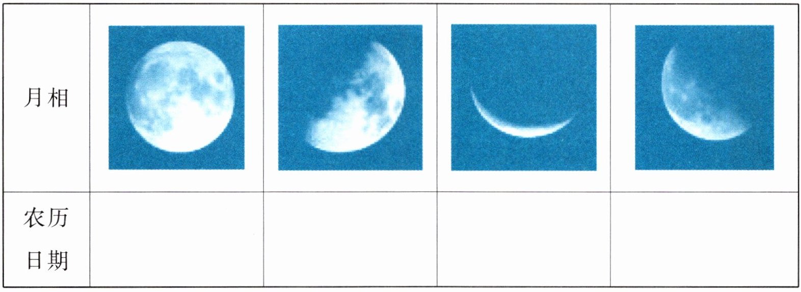 3. 在月相图下方的方格里写出此月相发生的大概日期。