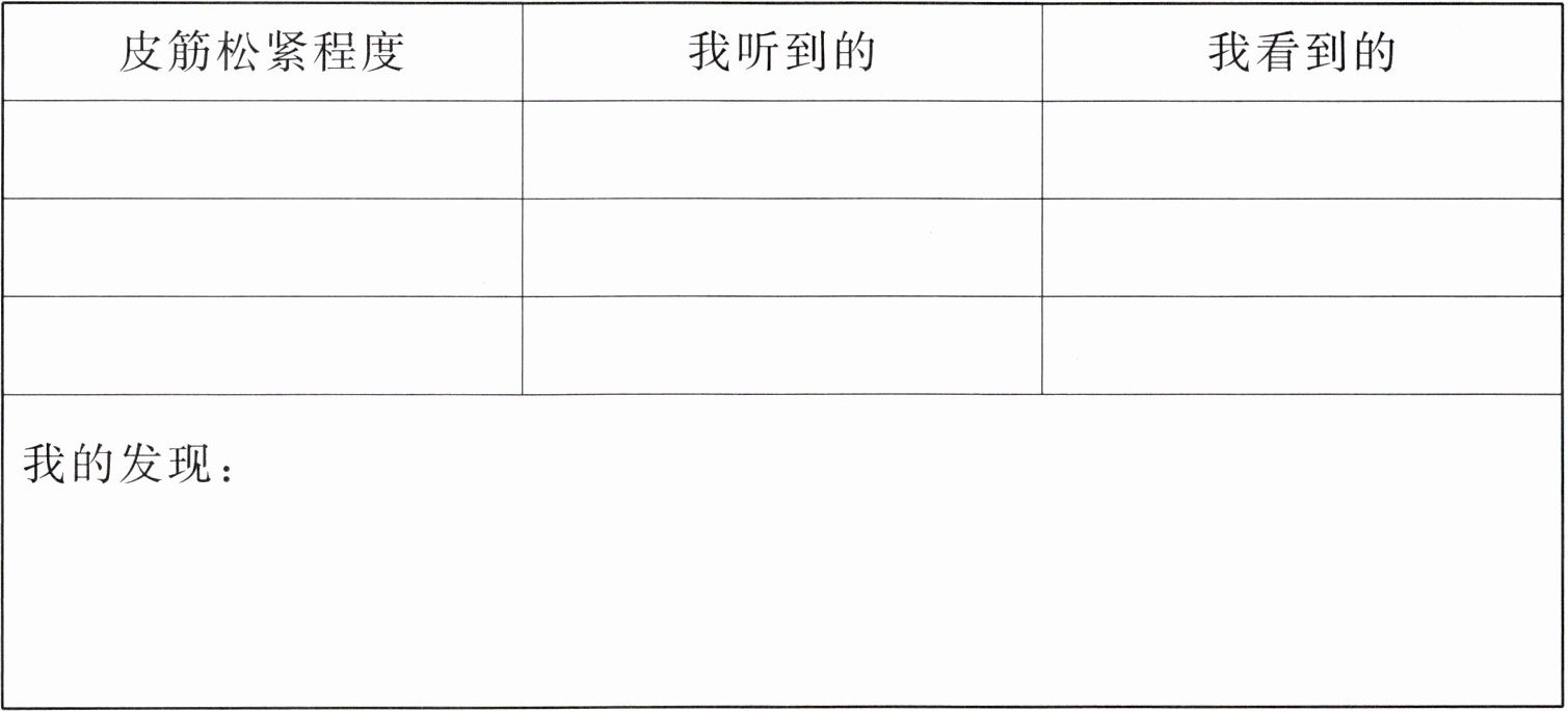 想办法让皮筋发出高低不同的声音,观察并记录皮筋振动的状态。