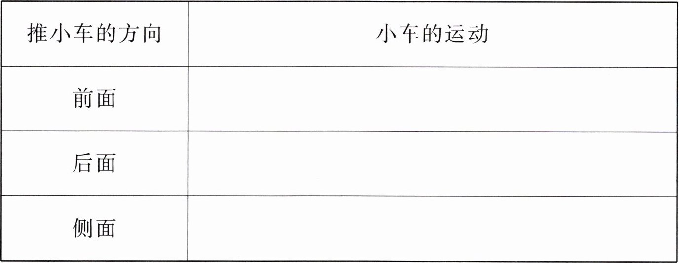 2. 一辆运动着的小车,用手在小车的前、后或侧面推小车,小车会怎样?