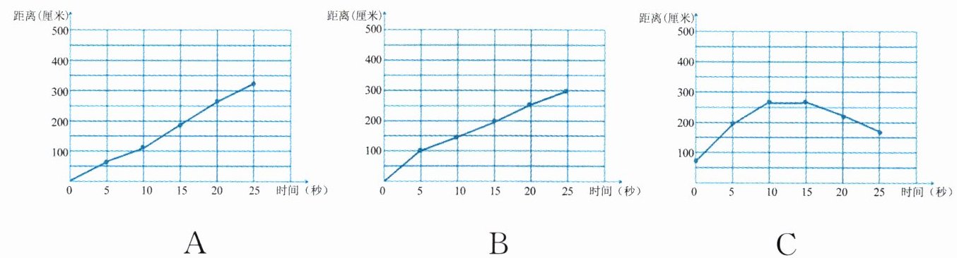 (1)组员们根据记录结果画折线统计图,下面画得正确的是( )。