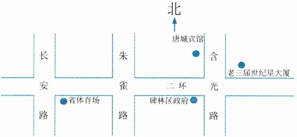 (2)唐城宾馆在碑林区政府的( )。