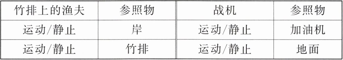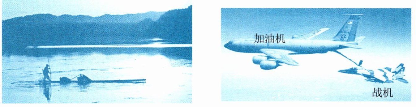 竹排上的渔夫 参照物 战机 参照物 运动 岸 静止 加油机 静止 竹排 运动 地面