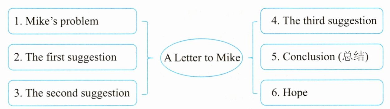 你将听到一封露西写给迈克的回信,录音播放两遍。请根据所听到的内容,记录思维导图提示的信息,在50秒钟内说一段话复述这封信,包含六个要点的内容。