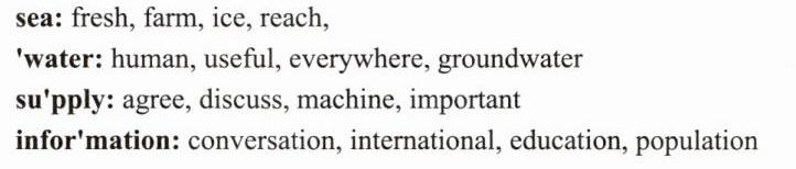 1Listen and mark the stress of the words in the box. Then put each word into the correct column to match the stress pattern. 听录音,用重音符号标记单词重音,并根据重音位置将单词放入框内。